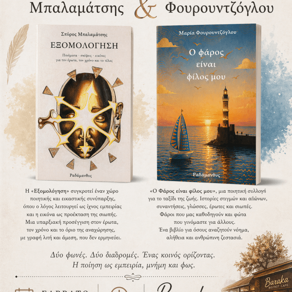 από Ραδάμανθυς - Εκδόσεις, Πολυχώρος, Εργαστήρια Δημοσιεύθηκε την 21/04/2026 Δημήτρης Ανδρικίδης «Ανατολή και Βοριάς – Βιβλιοπαρουσίαση στα Χανιά Ανάγνωση του υπολοίπου