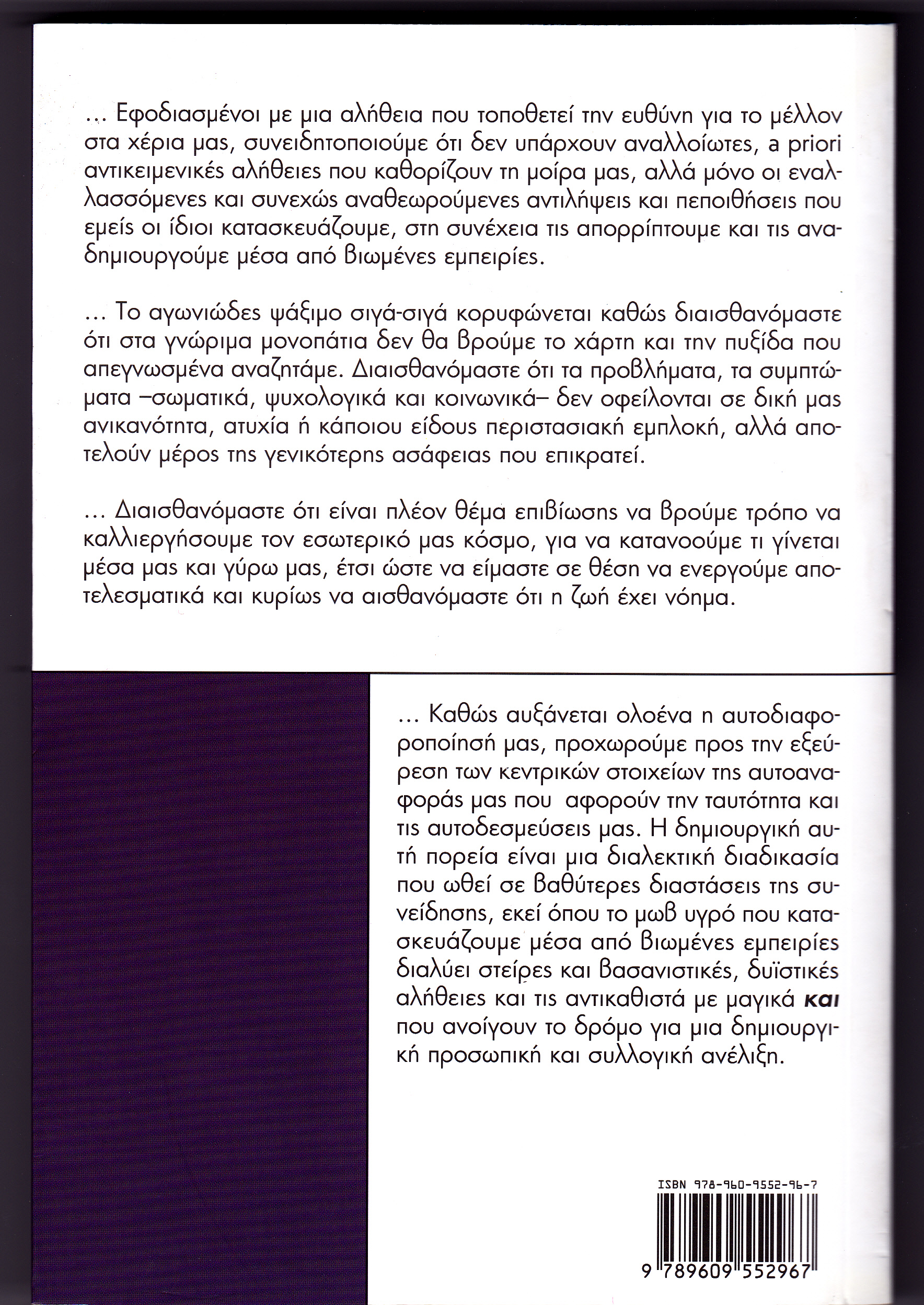 Ποτέ άλλοτε στην ιστορία του πολιτισμού δεν είχε ο άνθρωπος τόσο ζωτική ανάγκη και συγχρόνως τόσες δυνατότητες μαζικής στράτευσης με στόχο την εξερεύνηση του εσωτερικού του κόσμου, την αναζήτηση μιας ποιότητας ζωής που δεν θα περιορίζεται σε υλικές απολαύσεις, επιτεύγματα και απολαβές αλλά σε εσωτερικές κατακτήσεις.