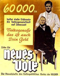 «60.000 μάρκα είναι το ποσό που κοστίζει στην λαϊκή κοινότητα, στη διάρκεια της ζωής του , αυτό το άτομο που πάσχει από κληρονομική μειονεξία. Αγαπητέ συμπολίτη αυτά είναι και δικά σου χρήματα.