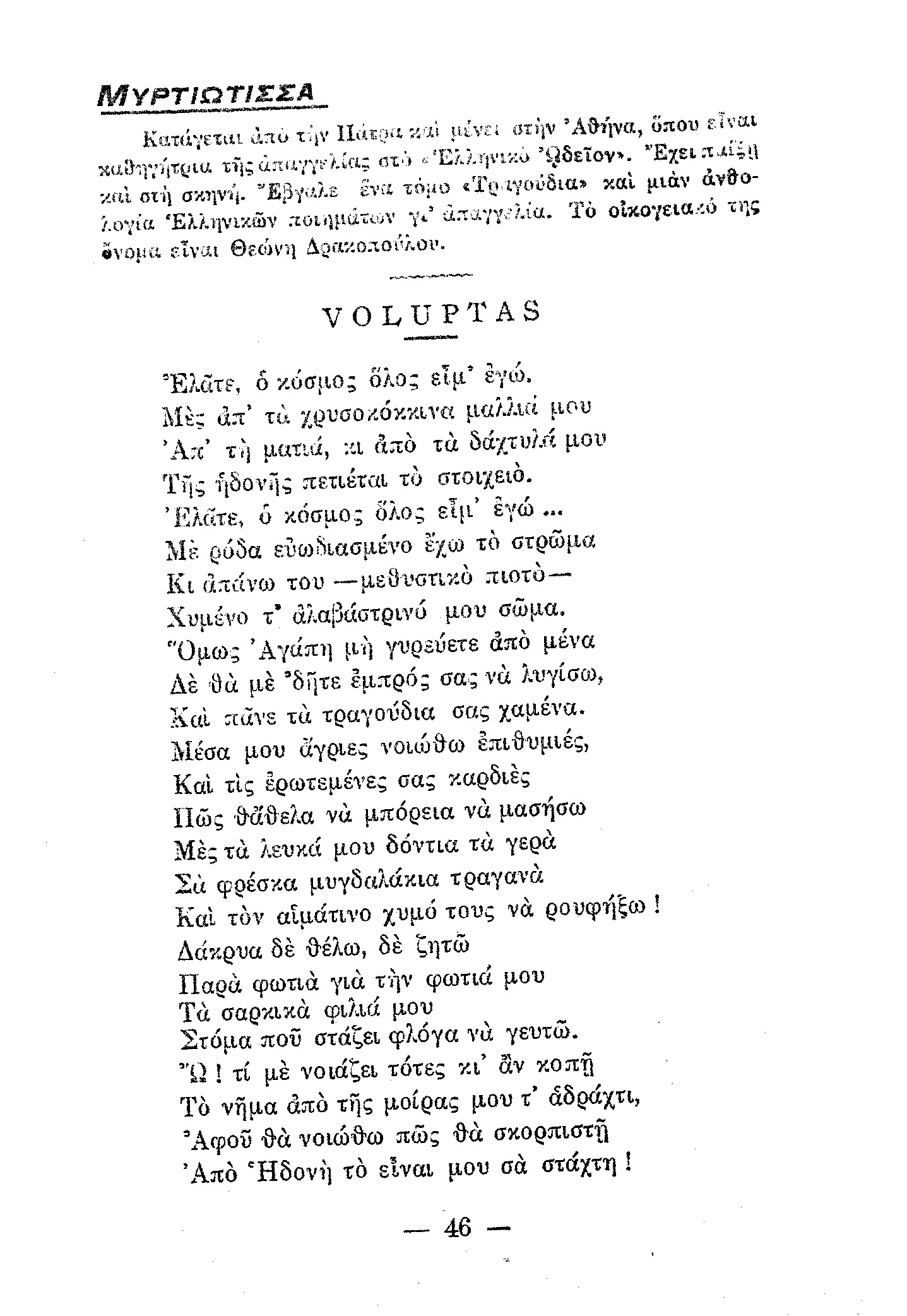 πνίξου στης Λήθης τώρα πια τους σκοτεινούς βυθούς.