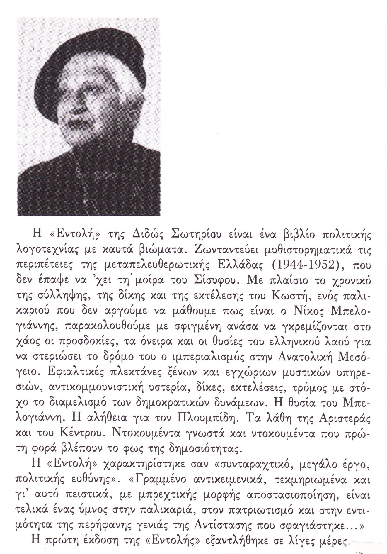 «Ξέρετε πού είναι το δικό μου ασυγχώρητο λάθος; ξέσπασε μια μέρα. Σκέφτομαι (θανάσιμο παράπτωμα να σκέπτεσαι και μάλιστα με προοπτική). Βλέπω τα λάθη πριν γίνουν, ενώ οι αρχηγοί μας προτιμούν να τα βλέπουν κατόπιν εορτής και σε κάποια «ιστορική» ολομέλεια να τ’ αναγνωρίζουν με φιγουρατζίδικες αυτοκριτικές. Όμως και να κουνήσουν απ’ τα «πόστα» δε λένε! Εκεί, στο σβέρκο του κινήματος, Ισόβιοι κληρονομικοί άρχοντες. Να είσαι ανεπαρκής είναι θεμιτό. Μα να διαιωνίζεις την ανεπάρκεια σου και να την επιβάλεις σαν κάτι ιερό και απαραβίαστο, αυτό, να με συμπαθάτε, λέγεται…»