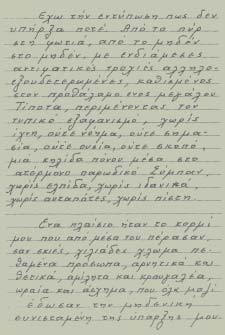 «Στις εξήμισυ η ώρα το απόγευμα φεύγω συνήθως, έχω ραντεβού με τις φίλες μου στο Σύνταγμα, πηγαίνουμε για καφέ, συναντιόμαστε κάθε Τετάρτη και Σαββατοκύριακο. Είμαστε 3-4. Στην αρχή είχα κάποιο δισταγμό ότι δεν μπορούσα να κυκλοφορώ καλά με τις συγκοινωνίες και με τρομάζανε οι αποστάσεις, κι ερχόντανε εκείνες, παίρναν δύο συγκοινωνίες και ερχόντανε και με βλέπανε. Αλλά αφ’ ότου πήγα στο Ψυχικό [σε ξενώνα] απελευθερώθηκα, και τώρα που παίρνω δύο συγκοινωνίες δεν με πειράζει. Στον ξενώνα είναι καλύτερα απ’ ότι να είσαι στο νοσοκομείο. Γιατί ανοίγεις την πόρτα και βγαίνεις στον έξω κόσμο. Είναι διαφορετικά».