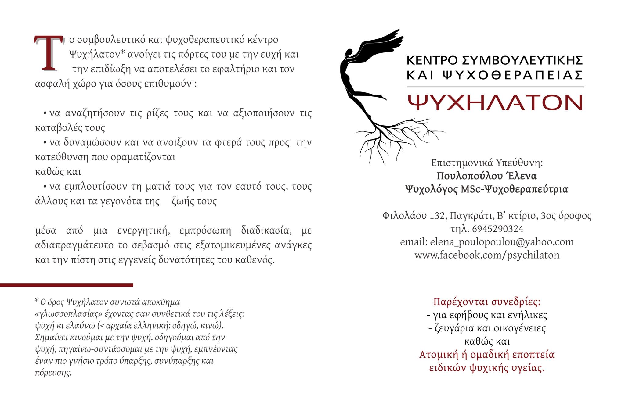 ΚΕΝΤΡΟ ΣΥΜΒΟΥΛΕΥΤΙΚΗΣ ΚΑΙ ΨΥΧΟΘΕΡΑΠΕΙΑΣ