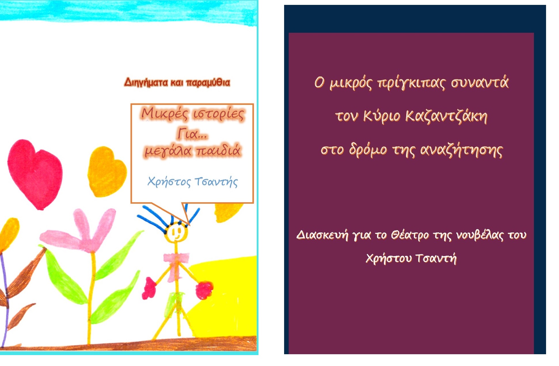 - Ο πίνακας του βιβλίου «Ο μικρός πρίγκιπας συναντά τον Κύριο Καζαντζάκη στο δρόμο της αναζήτησης» είναι της Μαρίας Τσαντή.