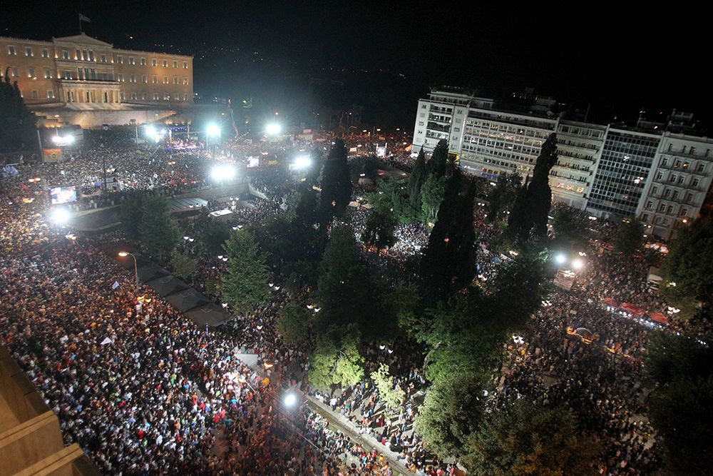 Ακτιβιστές διέκοψαν την ομιλία της φωνάζοντας ΟΧΙ, ενώ η διεθνής καμπάνια αλληλεγγύης στην Ελλάδα με κεντρικό σύνθημα ΟΧΙ στη λιτότητα προσεγγίζει το μισό εκατομμύριο υπογραφές μέσα σε ελάχιστο χρόνο. Αλλά και οι διαδηλώσεις σε ολόκληρη την Ευρώπη είναι μαζικές και μαχητικές υπέρ του ΟΧΙ της Ελλάδας. Όσο για τη συγκέντρωση της Αθήνας, η εικόνα μιλάει…