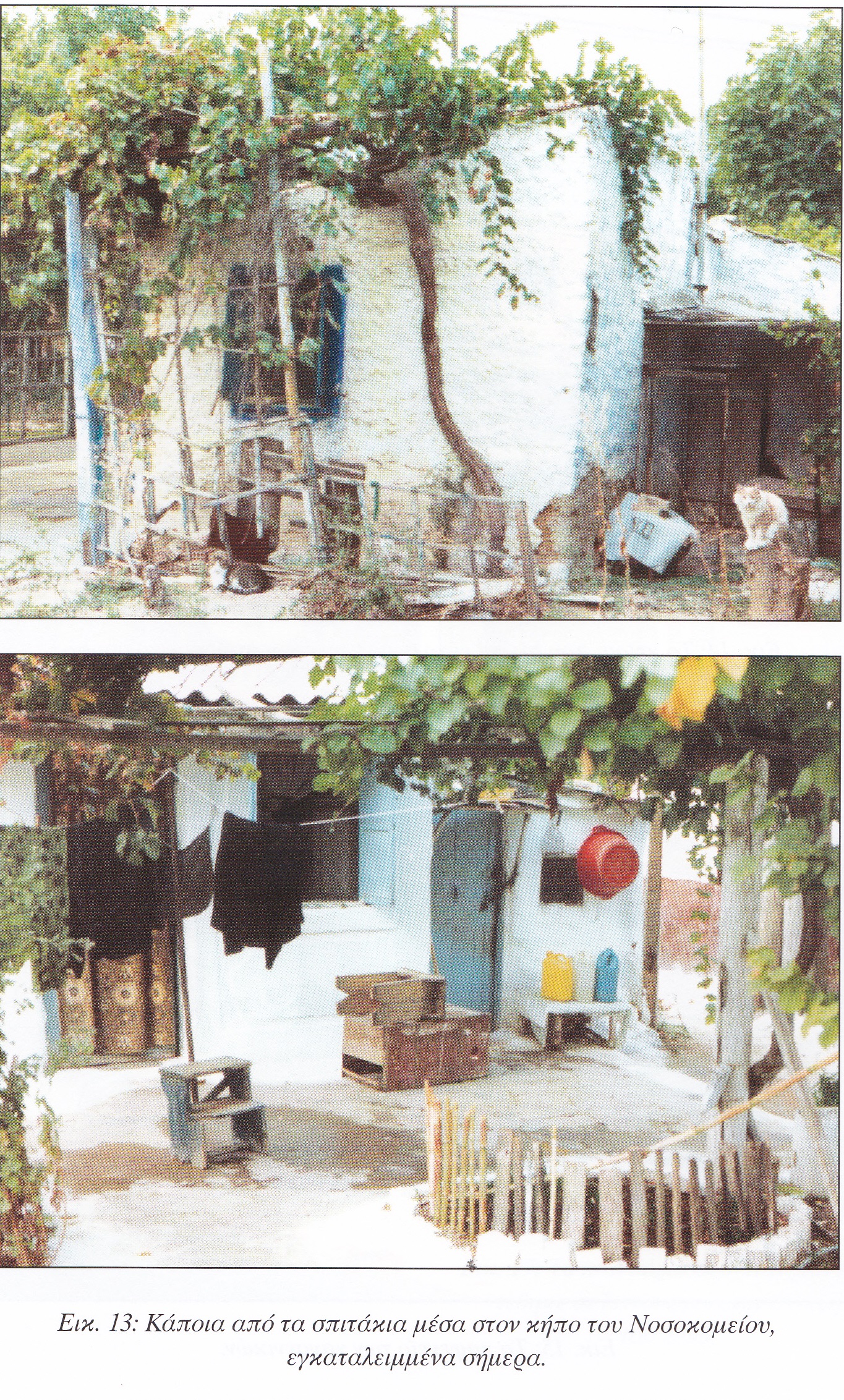 Από το σημείο εκείνο διακρινόταν κάτω αριστερά το πρώτο κτίριο του σταθμού και, πιο πάνω, στρατιωτικά παραπήγματα σε σχήμα σήραγγας (τολ), τα οποία προορίζονταν για τη στέγαση των χανσενικών που μεταφέρθηκαν από την Σπιναλόγκα, τη Χίο και τη Σάμο, τα τρία εθνικά λεπροκομεία της Ελλάδας. Επάνω δεξιά διακρίνονταν σπιτάκια ασβεστωμένα, περιτριγυρισμένα από μικρούς κήπους που έμοιαζαν κάπως με αυτά της Σπιναλόγκας. Στο μέσο η εκκλησία, το θεραπευτήριο, το καφενείο και οι κοινόχρηστοι χώροι.