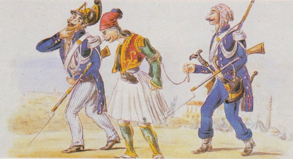 Έργο του A. Marc που δείχνει τη σύλληψη και την περιφορά ενός αντιφρονούντα αγωνιστή από τη χωροφυλακή των Βαυαρών