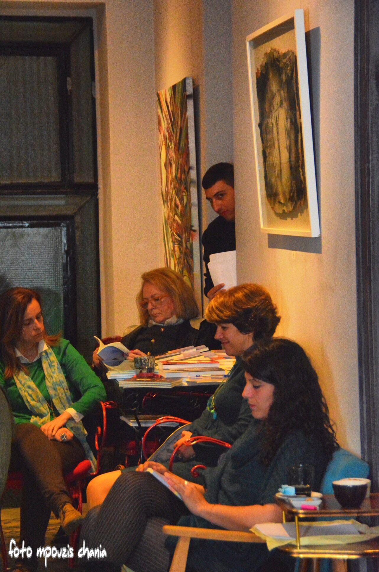 Στιγμιότυπο από το θεατρικό δρώμενο. Στο βάθος ο Μάνος Καλοιμοράκης. (φωτογραφία Foto Mpouzis Chania)