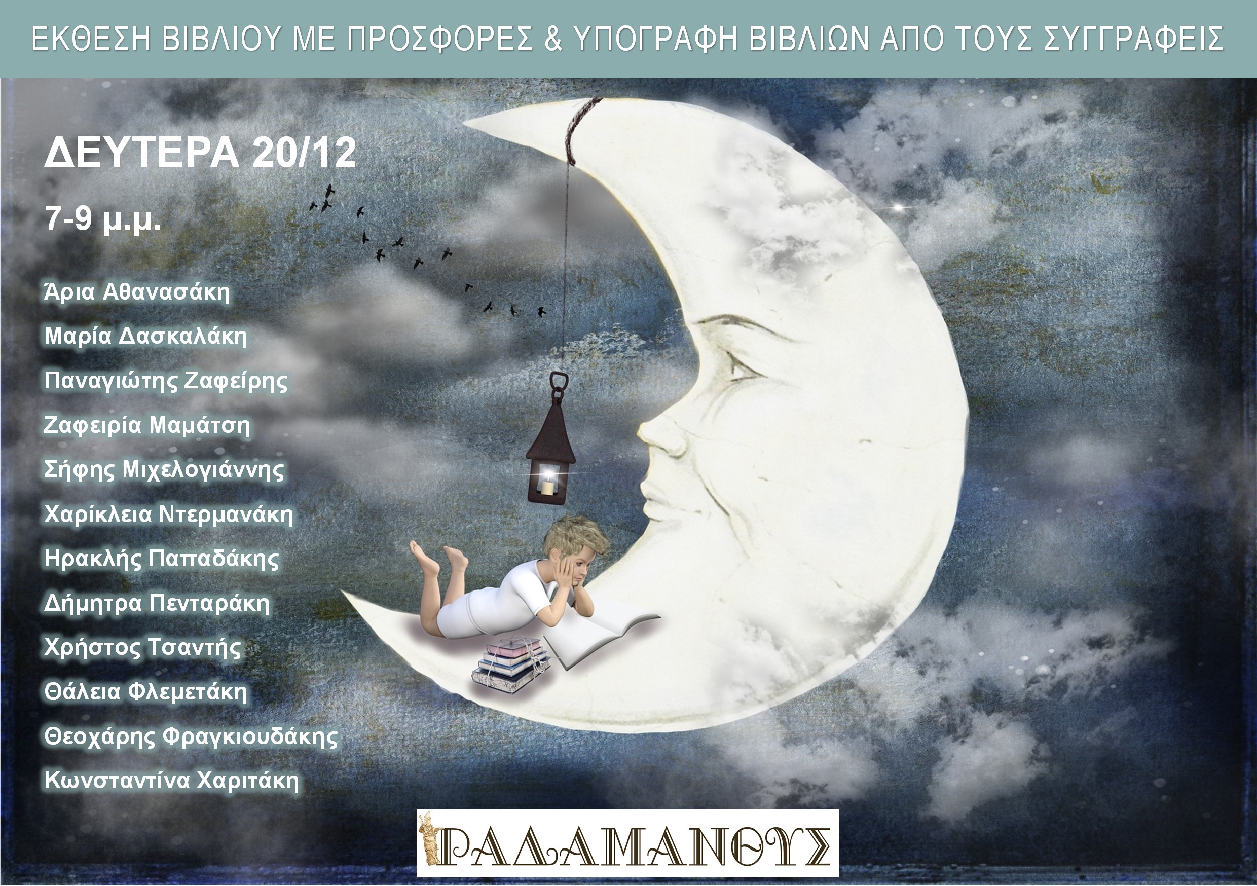 Την Δευτε΄ρα 20/12, οι συγγραφείς που συμμετέχουν είναι οι: