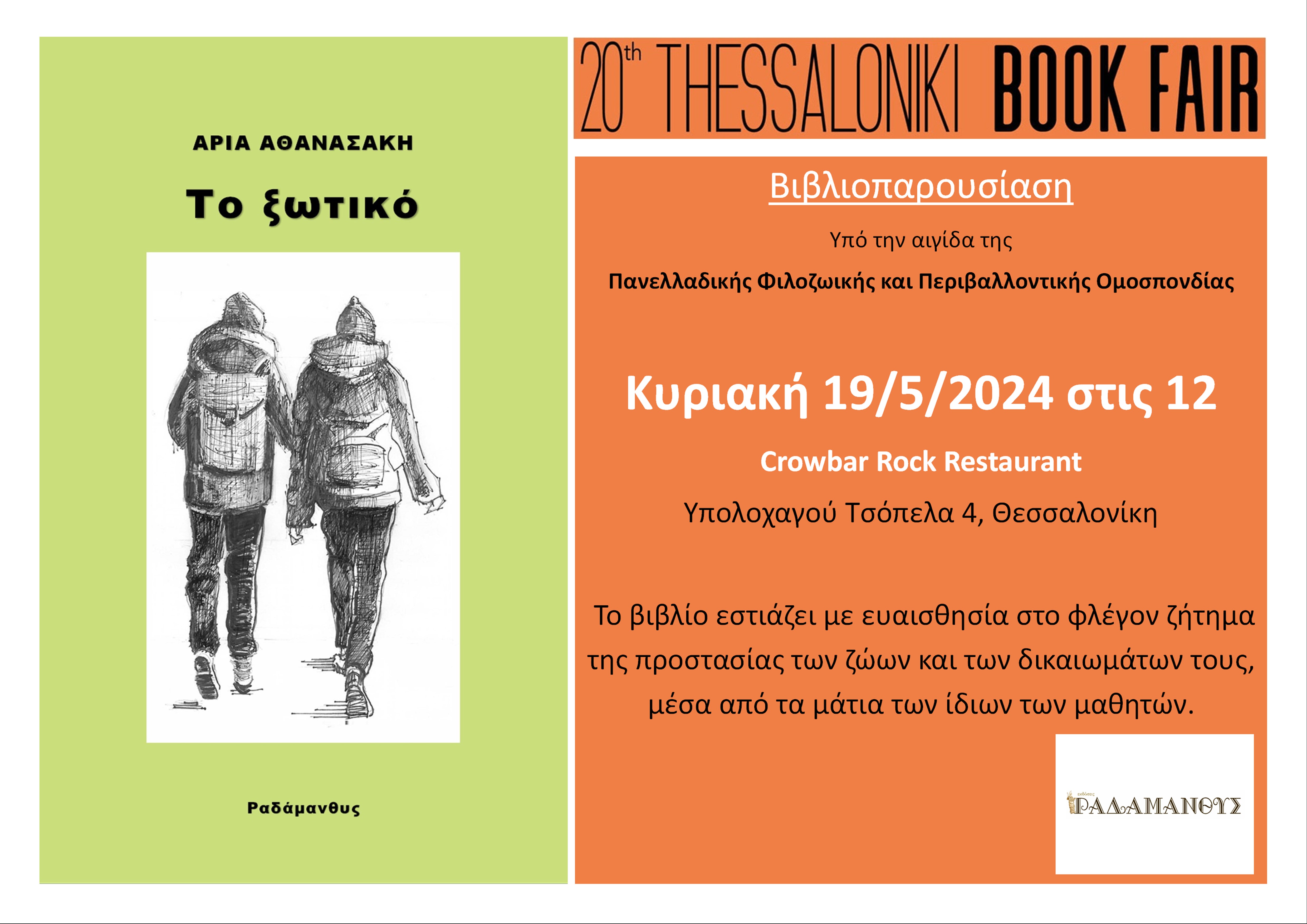 ΠΑΡΟΥΣΙΑΣΗ ΒΙΒΛΙΟΥ ΥΠΟ ΤΗΝ ΑΙΓΙΔΑ ΤΗΣ ΠΑΝΕΛΛΑΔΙΚΗΣ ΦΙΛΟΖΩΙΚΗΣ ΠΕΡΙΒΑΛΛΟΝΤΙΚΗΣ ΟΜΟΣΠΟΝΔΙΑΣ