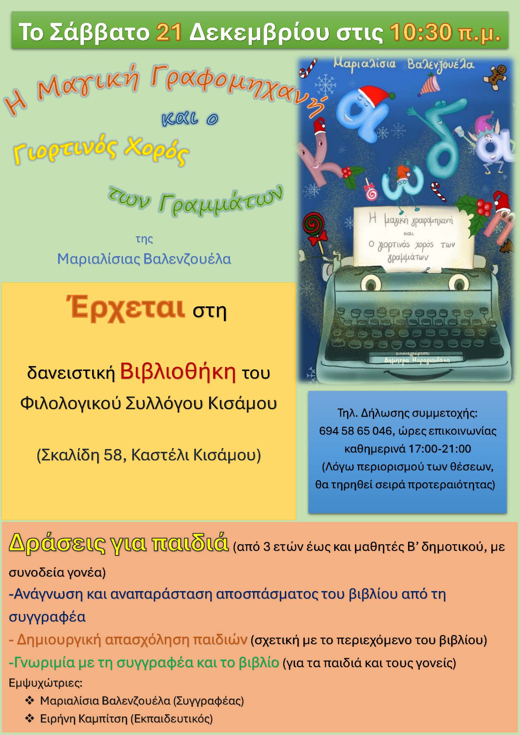 Σάββατο 21 Δεκεμβρίου, στις 10:30 π.μ., στη δανειστική Βιβλιοθήκη του