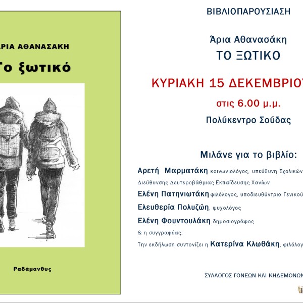 από Ραδάμανθυς - Εκδόσεις, Πολυχώρος, Εργαστήρια Δημοσιεύθηκε την 06/12/202412/12/2024 Βιβλιοπαρουσίαση στη Σούδα: Άρια Αθανασάκη – Το ξωτικό Ανάγνωση του υπολοίπου