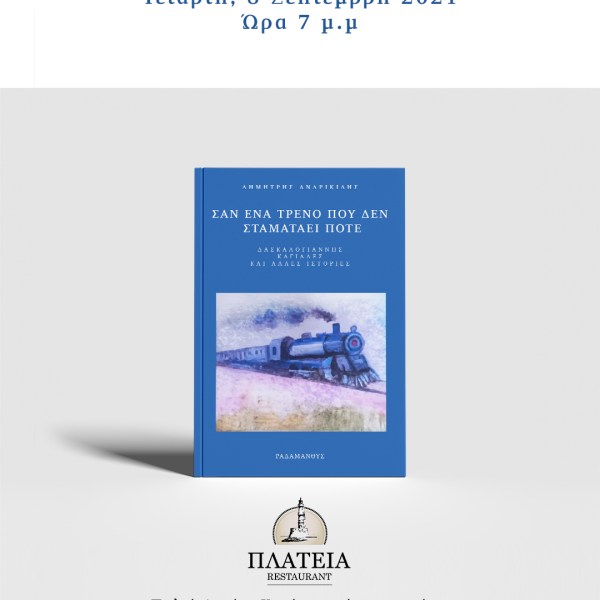 από Ραδάμανθυς - Εκδόσεις, Πολυχώρος, Εργαστήρια Δημοσιεύθηκε την 12/10/202117/10/2021 Βιβλιοπαρουσίαση: Δημήτρης Ανδρικίδης «Σαν ένα τρένο που δεν σταματάει ποτέ. Δασκαλογιάννης – Καγιαλές και άλλες ιστορίες» Ανάγνωση του υπολοίπου