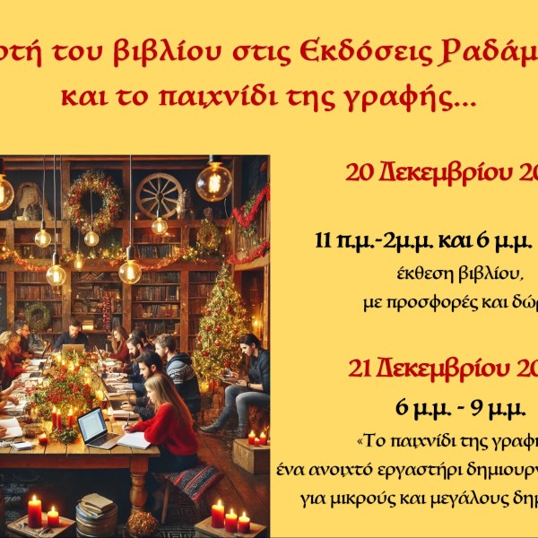 από Ραδάμανθυς - Εκδόσεις, Πολυχώρος, Εργαστήρια Δημοσιεύθηκε την 16/12/2024 Η γιορτή του βιβλίου στις Εκδόσεις Ραδάμανθυς και το παιχνίδι της γραφής, 20-21 Δεκεμβρίου 2024 Ανάγνωση του υπολοίπου