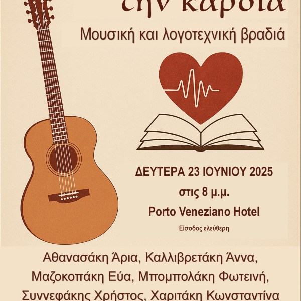 από Ραδάμανθυς - Εκδόσεις, Πολυχώρος, Εργαστήρια Δημοσιεύθηκε την 17/06/202507/08/2025 Ακούγοντας με την καρδιά – Μουσική και λογοτεχνική βραδιά (video) Ανάγνωση του υπολοίπου
