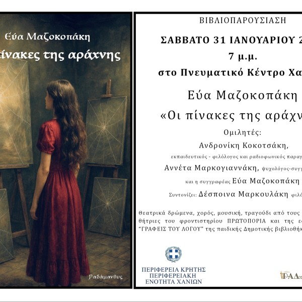 • Βιβλιοπαρουσίαση: Εύα Μαζοκοπάκη «Οι πίνακες της αράχνης»