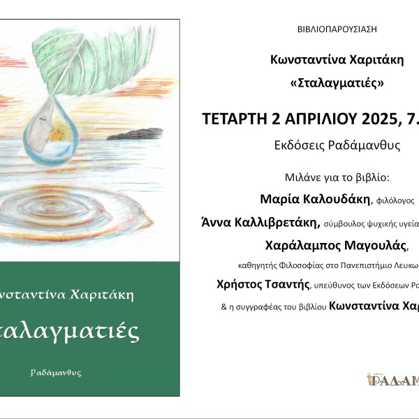 από Ραδάμανθυς - Εκδόσεις, Πολυχώρος, Εργαστήρια Δημοσιεύθηκε την 16/04/2025 Η Μαρία Καλουδάκη για τις «Σταλαγματιές» της Κωνσταντίνας Χαριτάκη Ανάγνωση του υπολοίπου