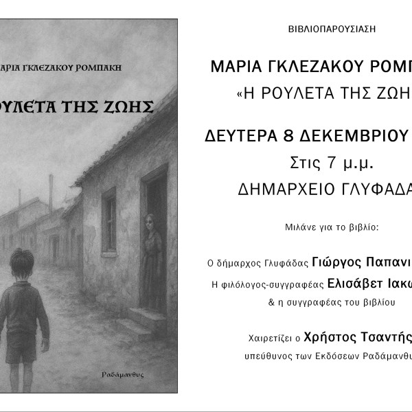 από Ραδάμανθυς - Εκδόσεις, Πολυχώρος, Εργαστήρια Δημοσιεύθηκε την 03/11/2025 Μαρία Γκλεζάκου Ρομπάκη «Η ρουλέτα της ζωής» Ανάγνωση του υπολοίπου