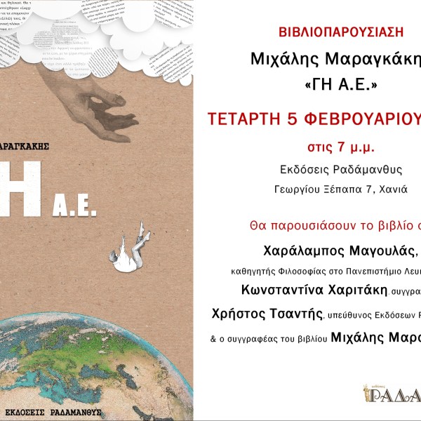 από Ραδάμανθυς - Εκδόσεις, Πολυχώρος, Εργαστήρια Δημοσιεύθηκε την 29/01/2025 Βιβλιοπαρουσίαση στα Χανιά: Μιχάλης Μαραγκάκης «Γη Α.Ε.» Ανάγνωση του υπολοίπου