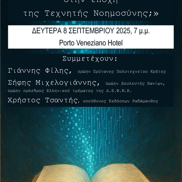 από Ραδάμανθυς - Εκδόσεις, Πολυχώρος, Εργαστήρια Δημοσιεύθηκε την 29/08/2025 «Πόσο διαβάζουν οι Έλληνες στην εποχή της Τεχνητής Νοημοσύνης;» Ανάγνωση του υπολοίπου