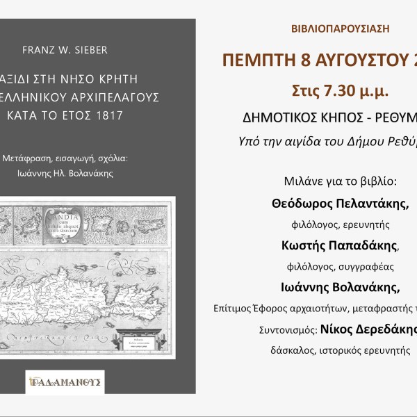 από Ραδάμανθυς - Εκδόσεις, Πολυχώρος, Εργαστήρια Δημοσιεύθηκε την 31/05/2025 Η Κρήτη του 1817 – Βολανάκης και Sieber Ανάγνωση του υπολοίπου