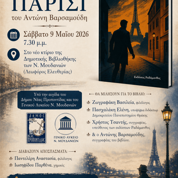από Ραδάμανθυς - Εκδόσεις, Πολυχώρος, Εργαστήρια Δημοσιεύθηκε την 24/04/2026 Παρουσίαση του βιβλίου «Ζεν στο Παρίσι» του Αντώνη Βαρσαμούδη Ανάγνωση του υπολοίπου