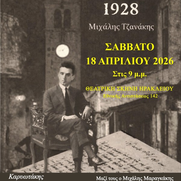 από Ραδάμανθυς - Εκδόσεις, Πολυχώρος, Εργαστήρια Δημοσιεύθηκε την 25/03/202625/03/2026 Το έργο του Μιχάλη Τζανάκη στο Ηράκλειο: «Κ. Καρυωτάκης, Ανοιξιάτικο δείλι, 1928» Ανάγνωση του υπολοίπου