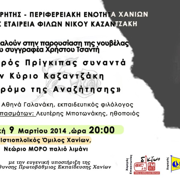 από Ραδάμανθυς - Εκδόσεις, Πολυχώρος, Εργαστήρια Δημοσιεύθηκε την 14/03/201414/02/2017 Ο μικρός πρίγκιπας συναντά τον Κύριο Καζαντζάκη στη Νέα Τηλεόραση Κρήτης Ανάγνωση του υπολοίπου