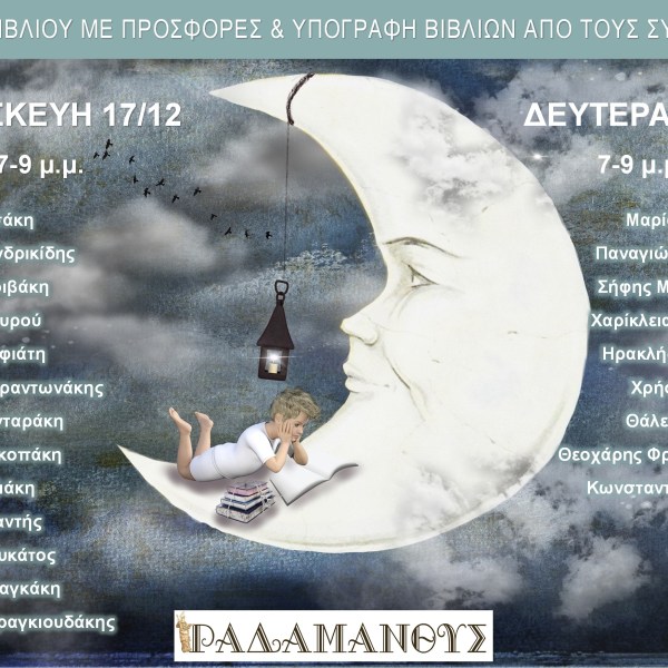 από Ραδάμανθυς - Εκδόσεις, Πολυχώρος, Εργαστήρια Δημοσιεύθηκε την 12/12/202115/12/2021 Μπαζάρ βιβλίων και αφιερώσεις από τους συγγραφείς Ανάγνωση του υπολοίπου